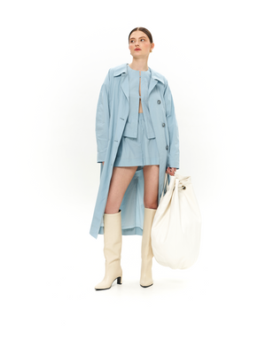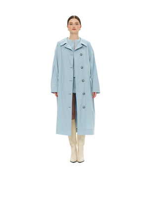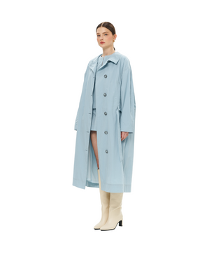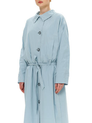 asymmetrical trench coat. featuring in-seam pockets at waist, interior self-tie belt can be adjusted around the waist, and a vent at center back. fully lined for added comfort.
