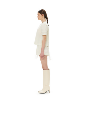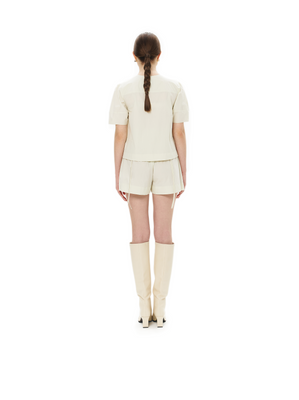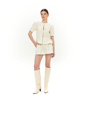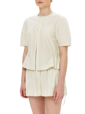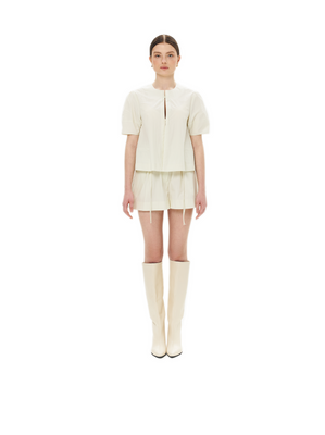 relaxed style boxer short, made from a crisp cotton and nylon fabric blend. featuring an elastic waistband and side seam pockets. lightweight feel, intended for a casual to sophisticated look.